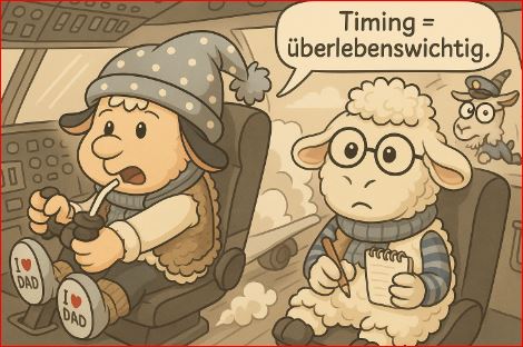 „Hast du schon mal beim Landen aus dem Fenster geschaut und gedacht: ‚Heiliger Karottenkeks, wir fliegen ja gar nicht gerade auf die Piste zu!‘